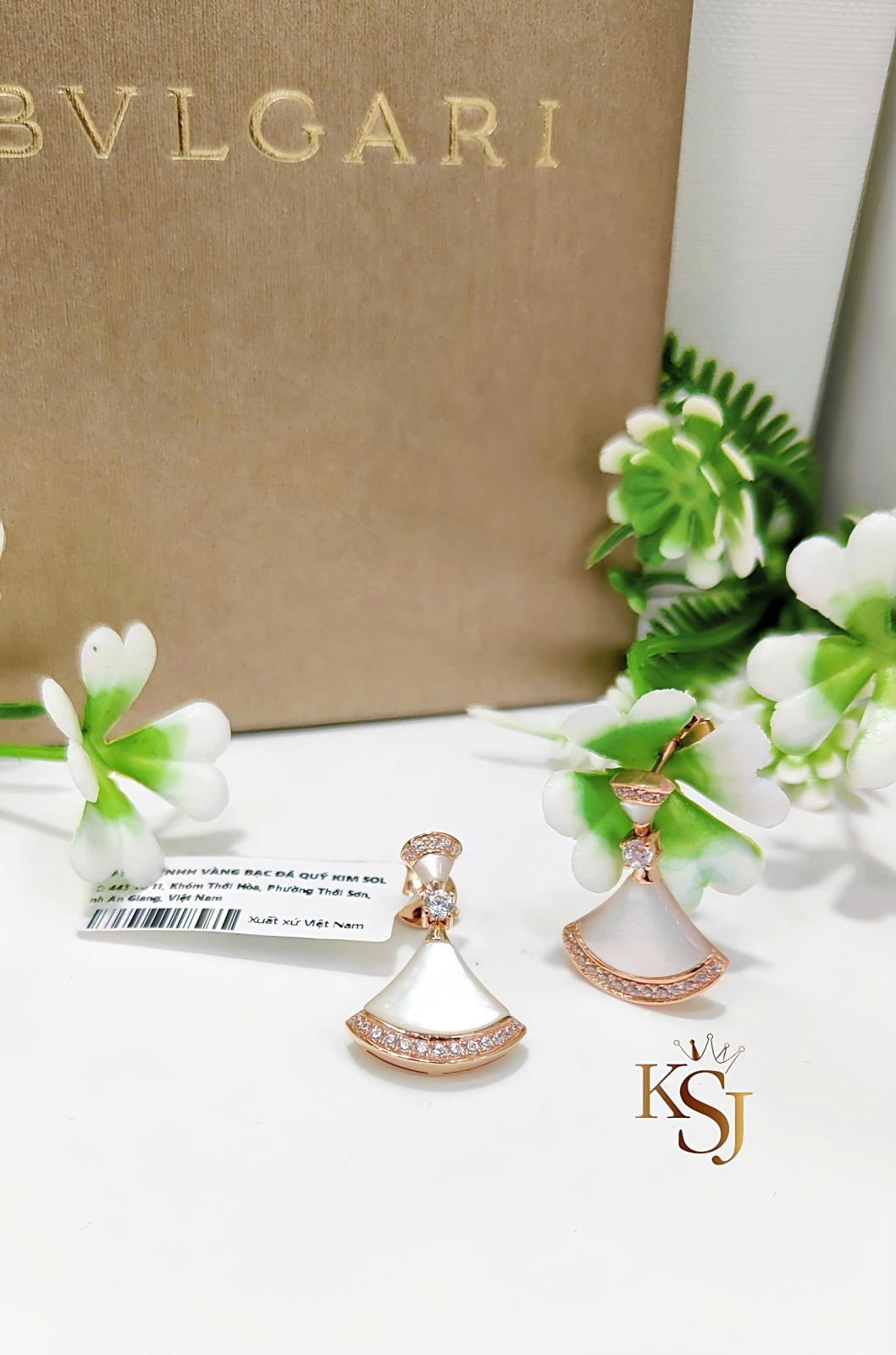 Đôi khuyên tai trong hình là mẫu Divas' Dream đến từ thương hiệu trang sức cao cấp Bvlgari. Tôn vinh vẻ đẹp nữ tính và sang trọng.