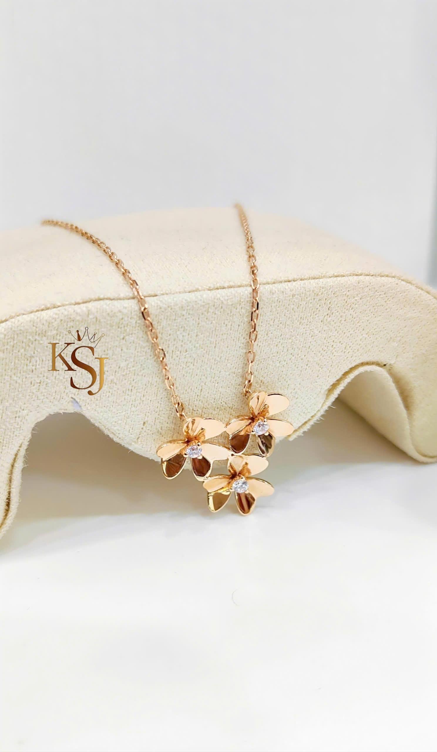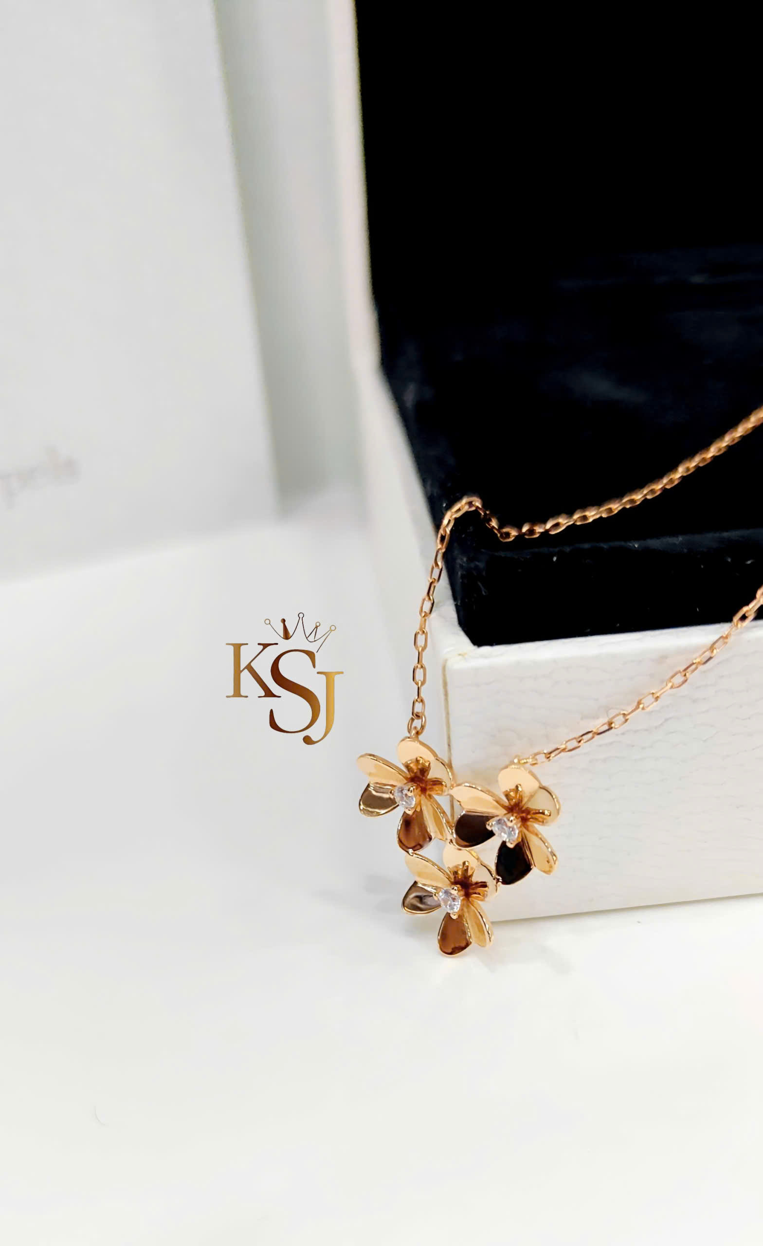 Thiết kế: Mặt dây chuyền hình bông hoa với các cánh hoa hình trái tim được đánh bóng gương (mirror polish) để tạo độ phản chiếu ánh sáng tối đa.