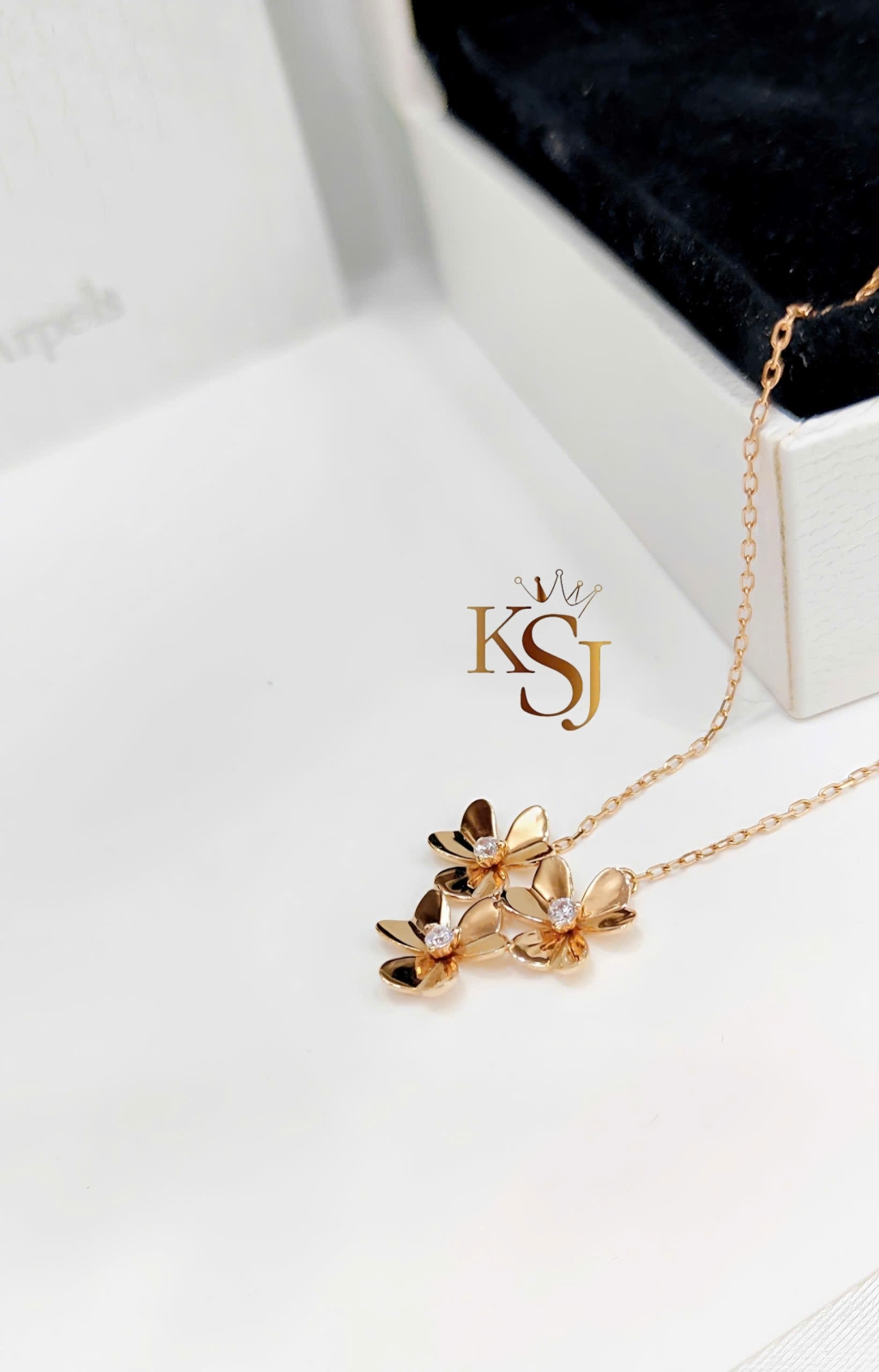 Dây chuyền là thiết kế tương đồng với dòng sản phẩm Frivole của thương hiệu trang sức cao cấp Van Cleef & Arpels