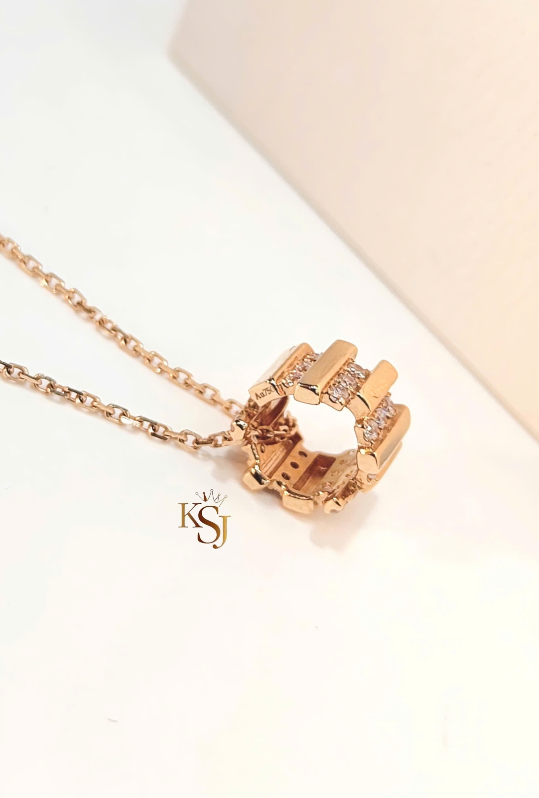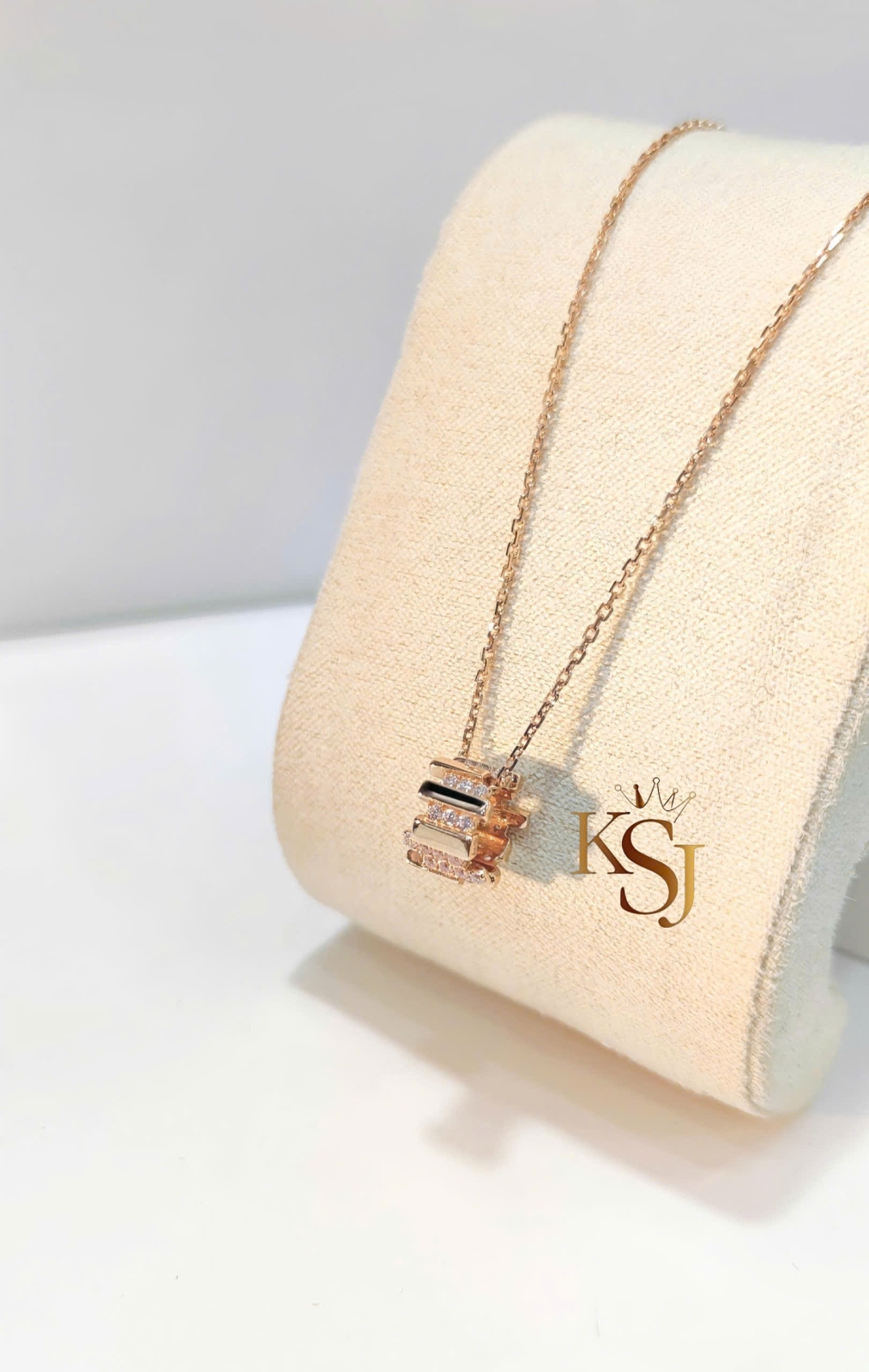 Chất liệu: Sản phẩm được chế tác bằng vàng hồng (rose gold) và được đính các viên đá CZ nhỏ ở một số mắt xích.