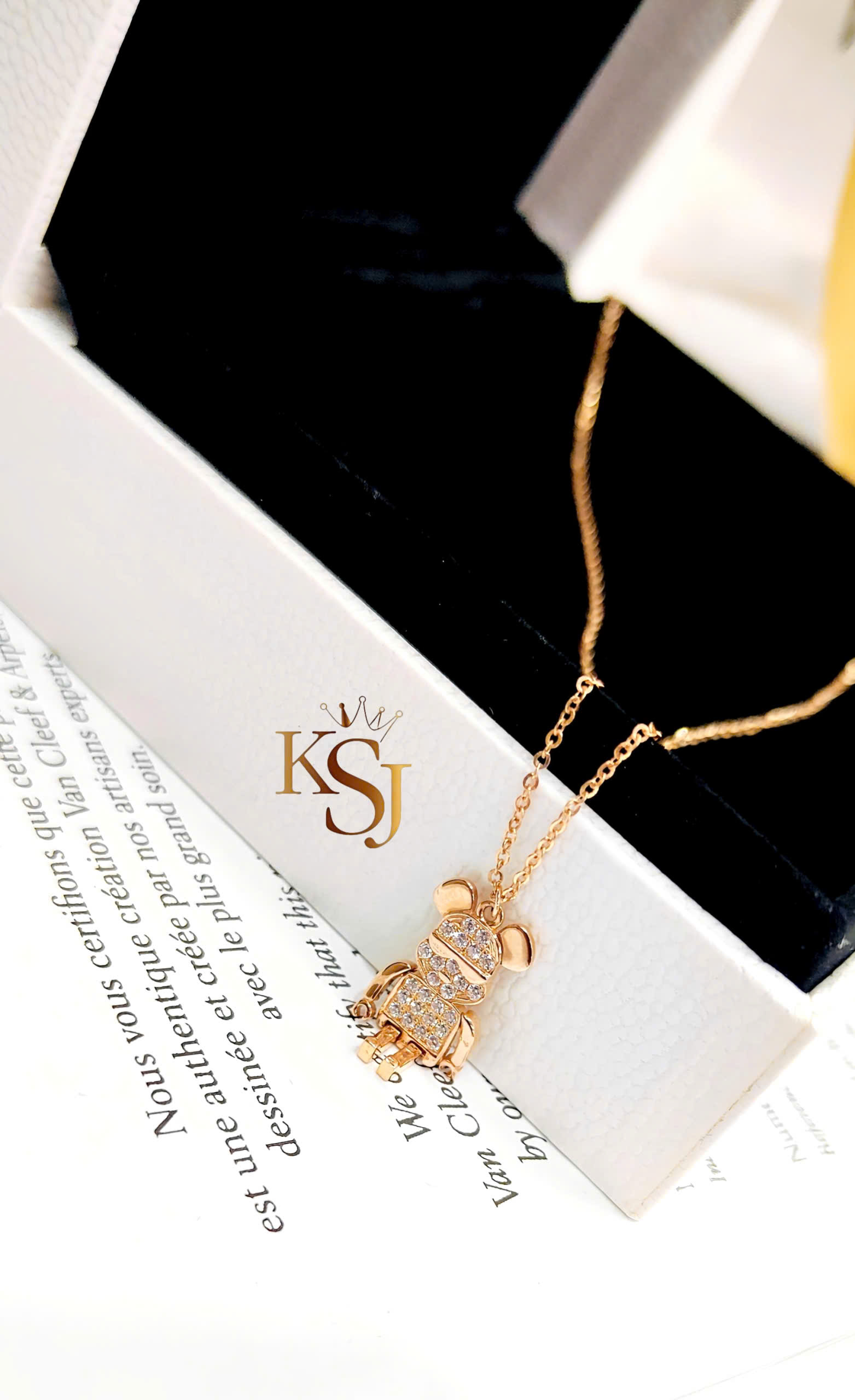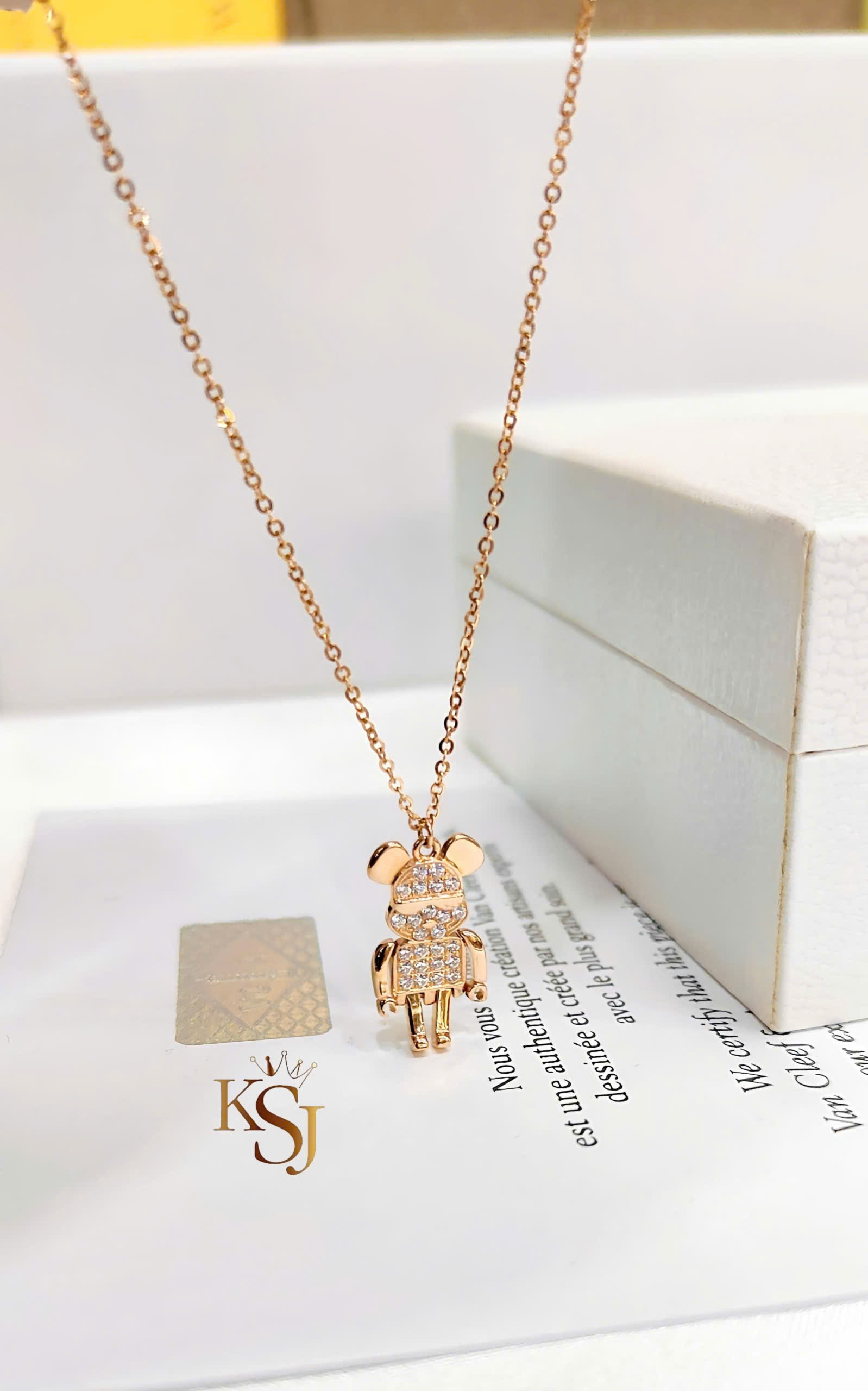 Kiểu dáng: Mặt dây chuyền hình chú gấu (phong cách Bearbrick) được đính đá toàn thân hoặc một phần.
