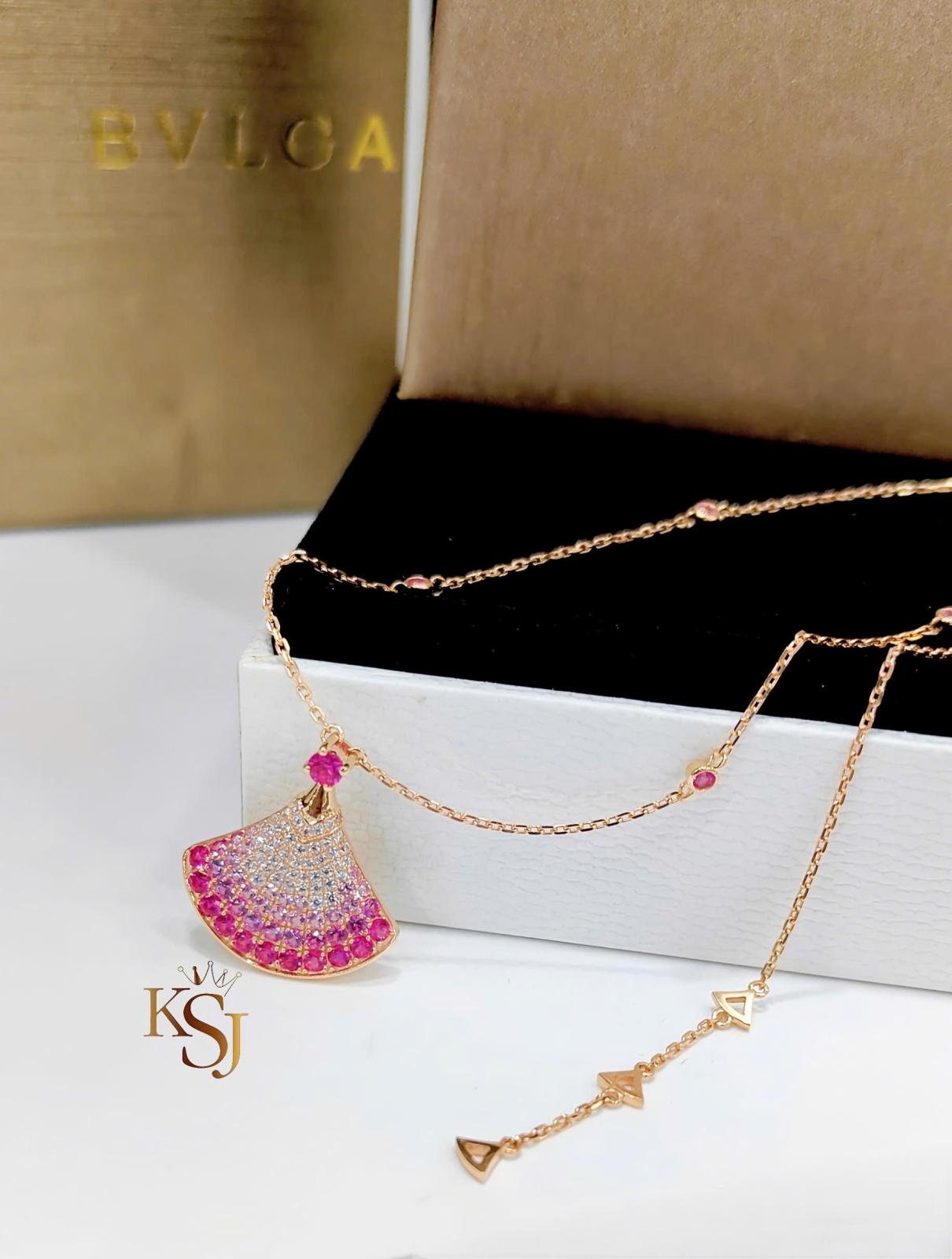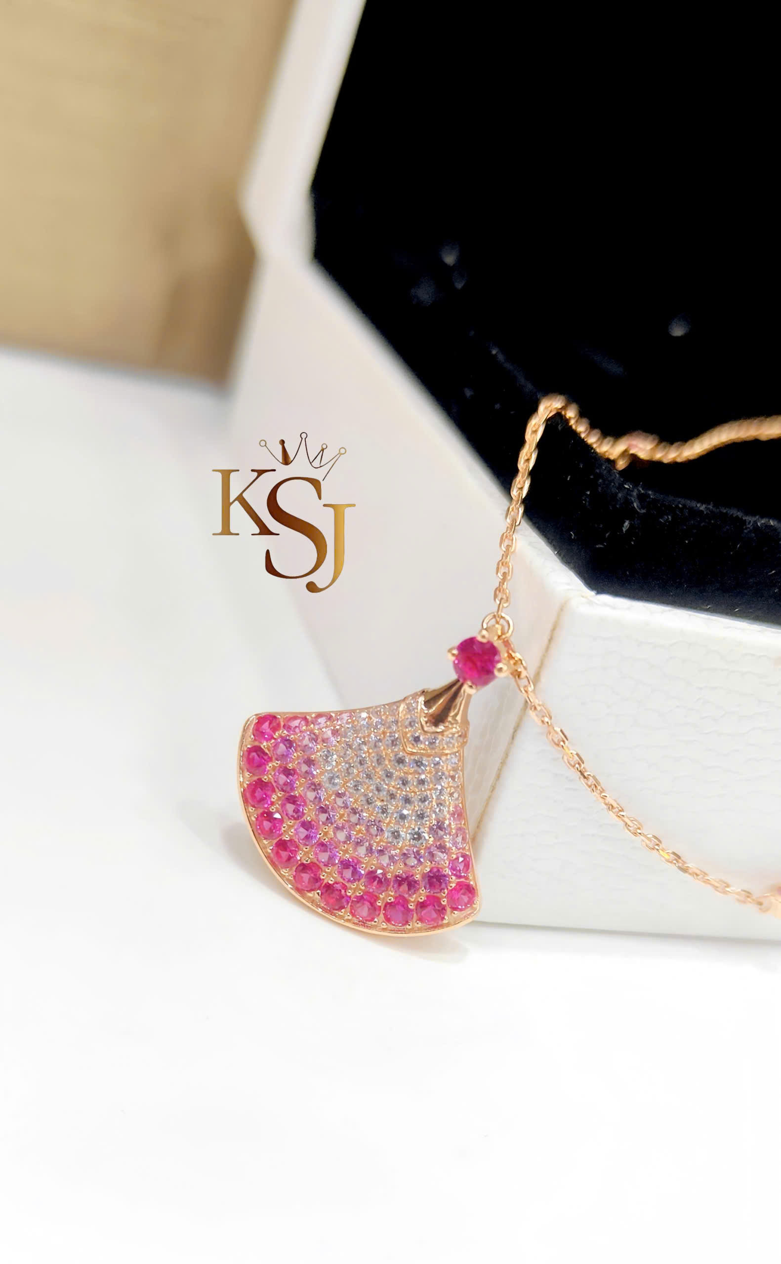 Thiết kế: Mặt dây hình quạt đặc trưng, tượng trưng cho vẻ đẹp nữ tính và sự sang trọng của những "diva" hiện đại.