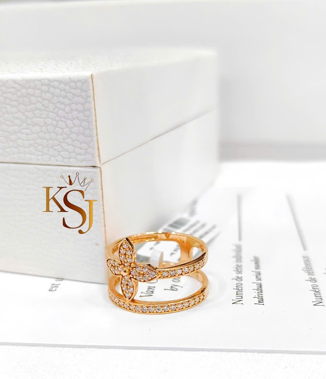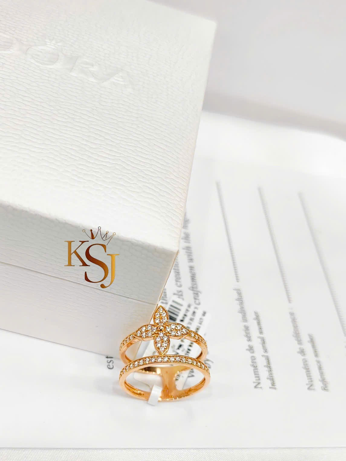 Chiếc nhẫn trong hình có thiết kế tương tự với dòng Idylle Blossom Two-Row của Louis Vuitton