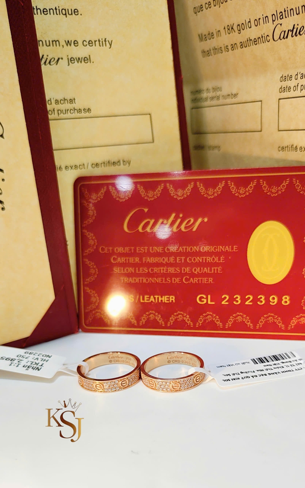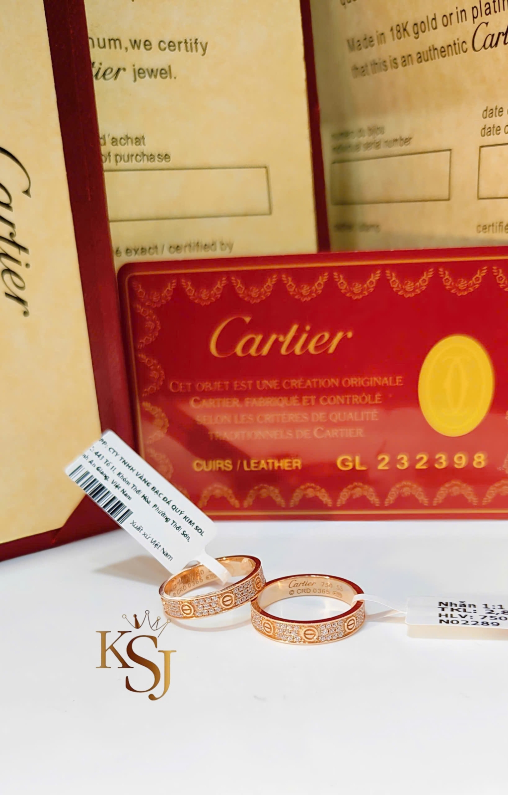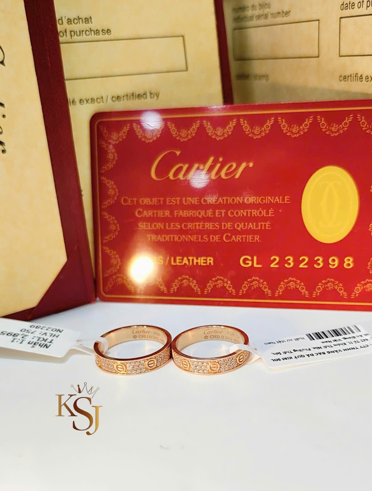 •  Nhẫn Cartier Full hột 4li (1:1)750 ni10