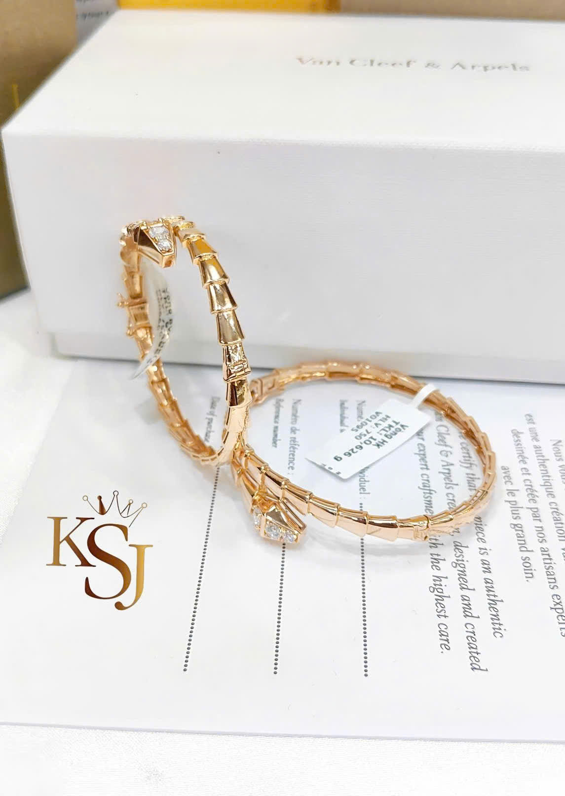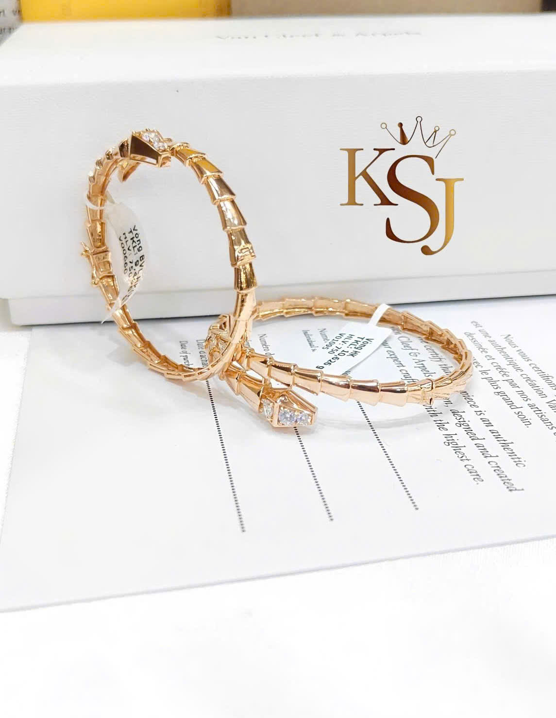Thiết kế và Hình dáng: Vòng có hình dáng con rắn quấn vòng quanh cổ tay, thân vảy được chế tác tinh xảo, sống động