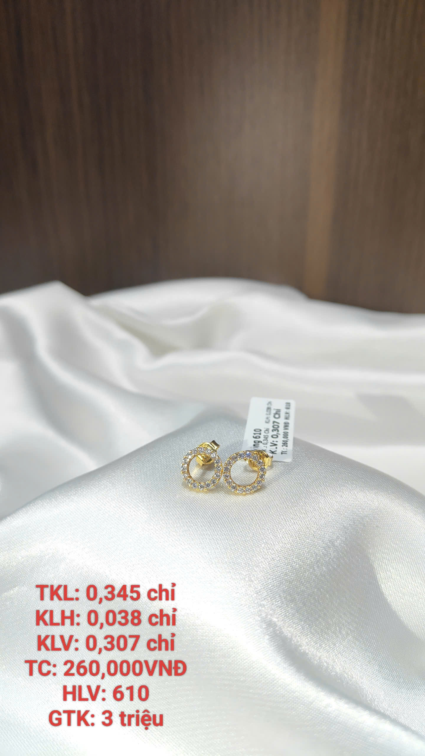 Khối lượng vàng (KLV): 0,307 chỉ