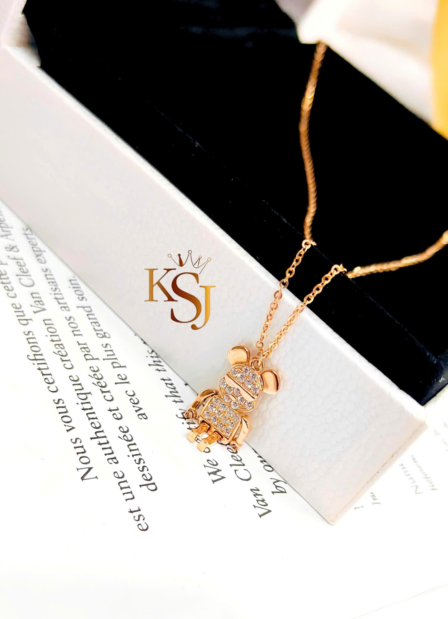 Kiểu dáng: Mặt dây chuyền hình chú gấu (phong cách Bearbrick) được đính đá toàn thân hoặc một phần.