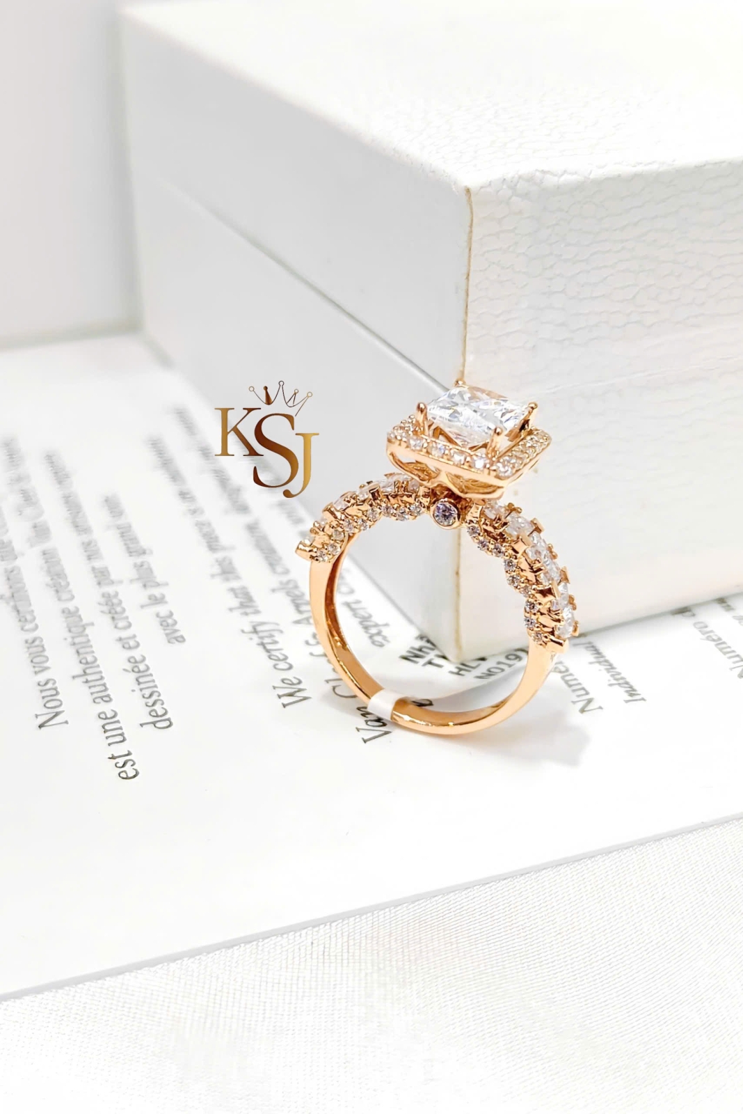N01914 Nhẫn Đính đá vuông Rose (2)750 ni 12