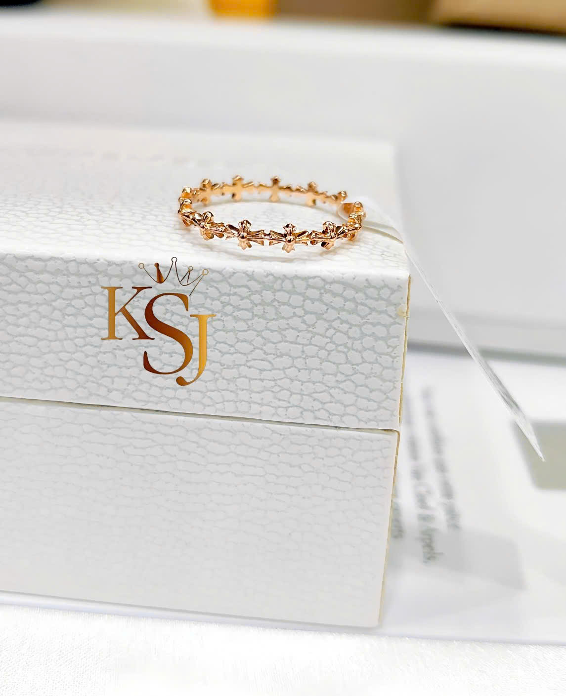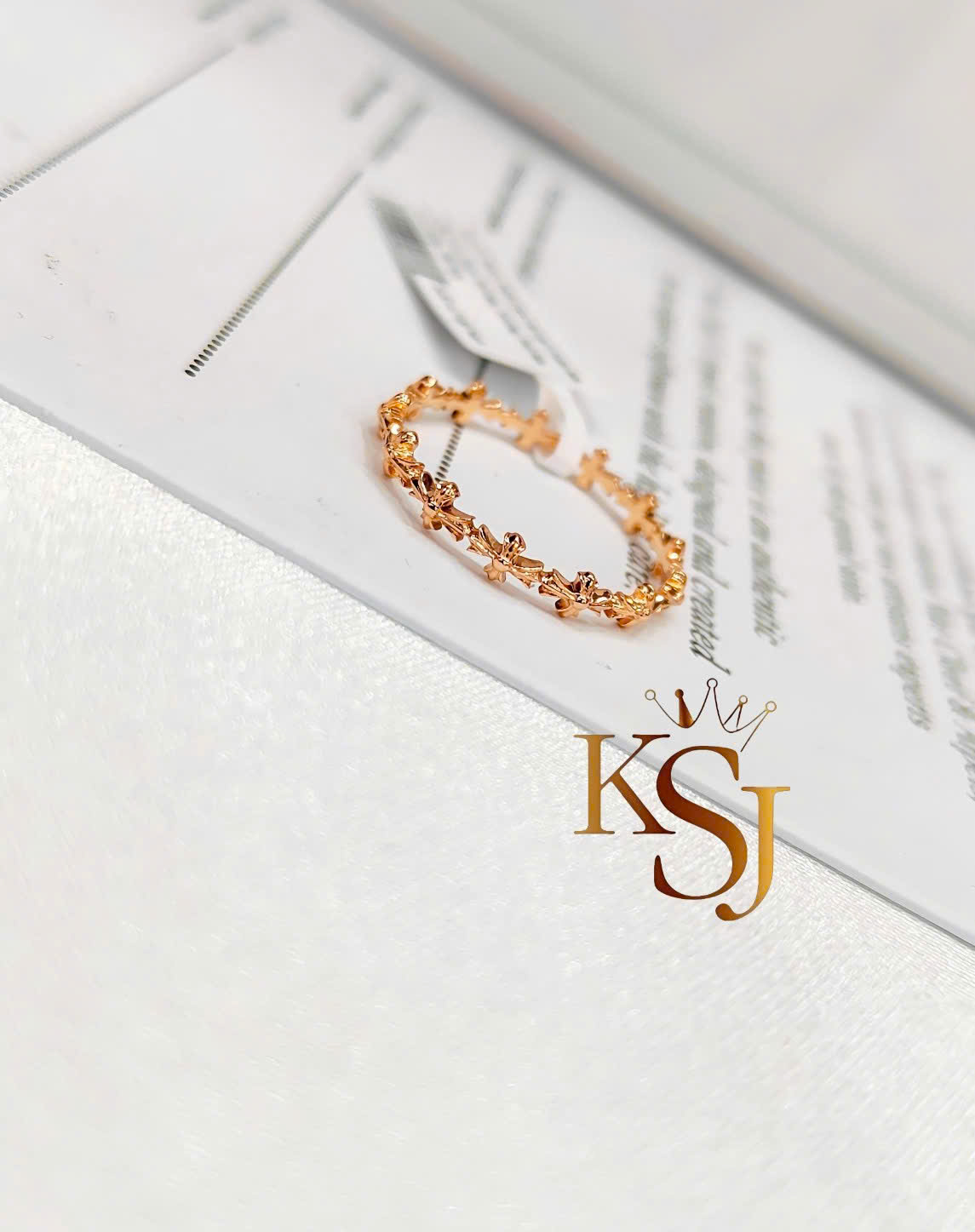 Nhẫn Chrome Hearts là một thiết kế đặc trưng với họa tiết các chữ thập nối tiếp nhau tạo thành vòng (band ring)