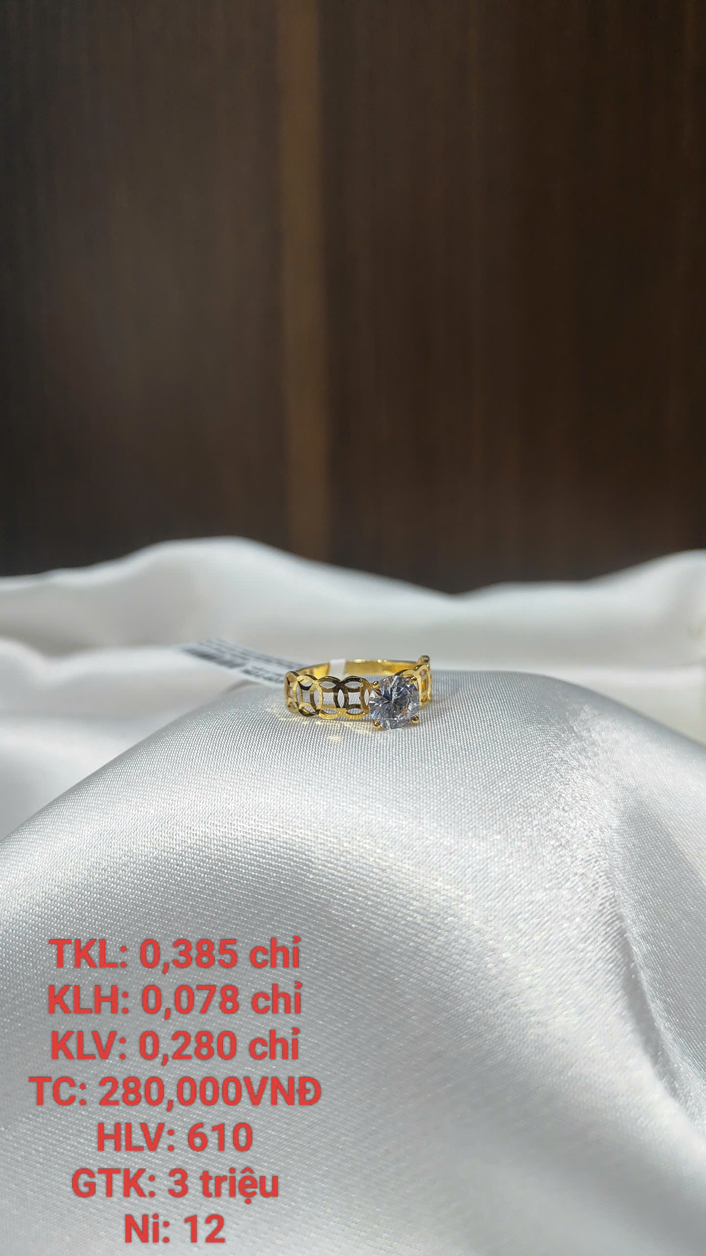 Khối lượng vàng (KLV): 0.280 chỉ