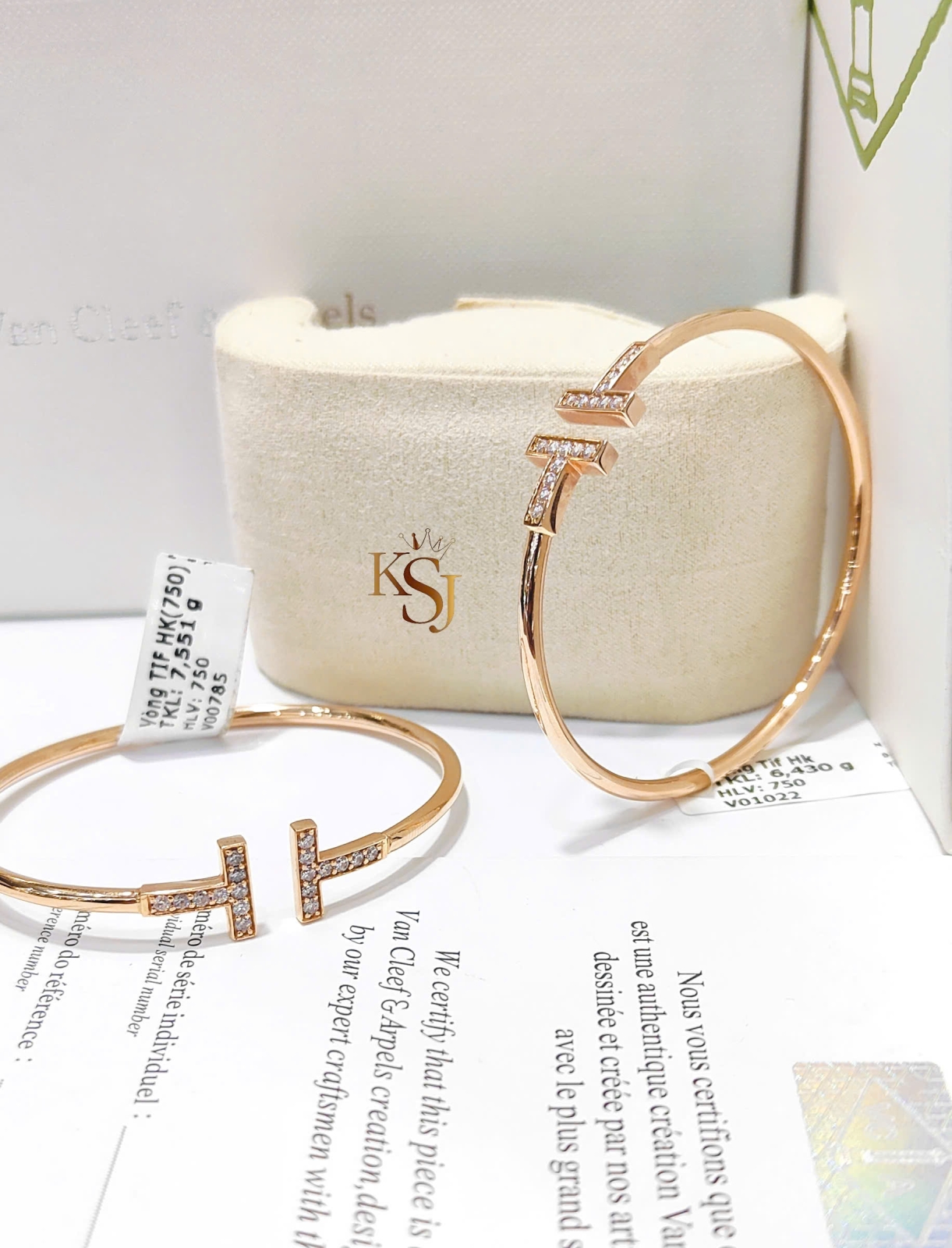 Chất liệu: Thường được chế tác từ vàng hồng 18K (Rose Gold) hoặc vàng vàng 18K (Yellow Gold).