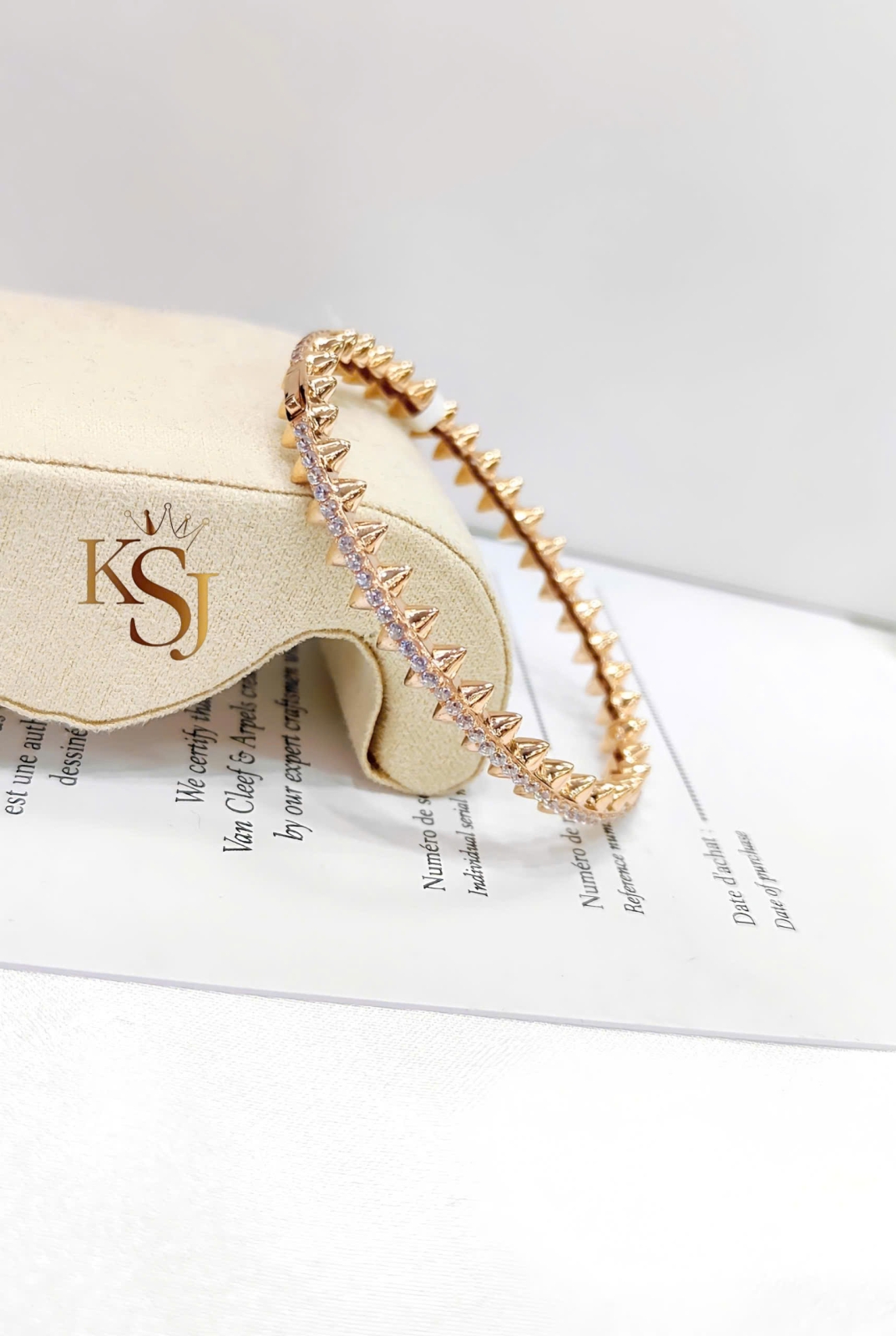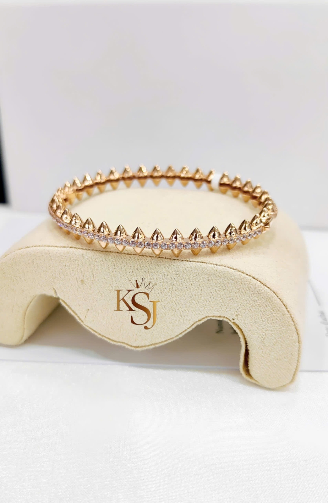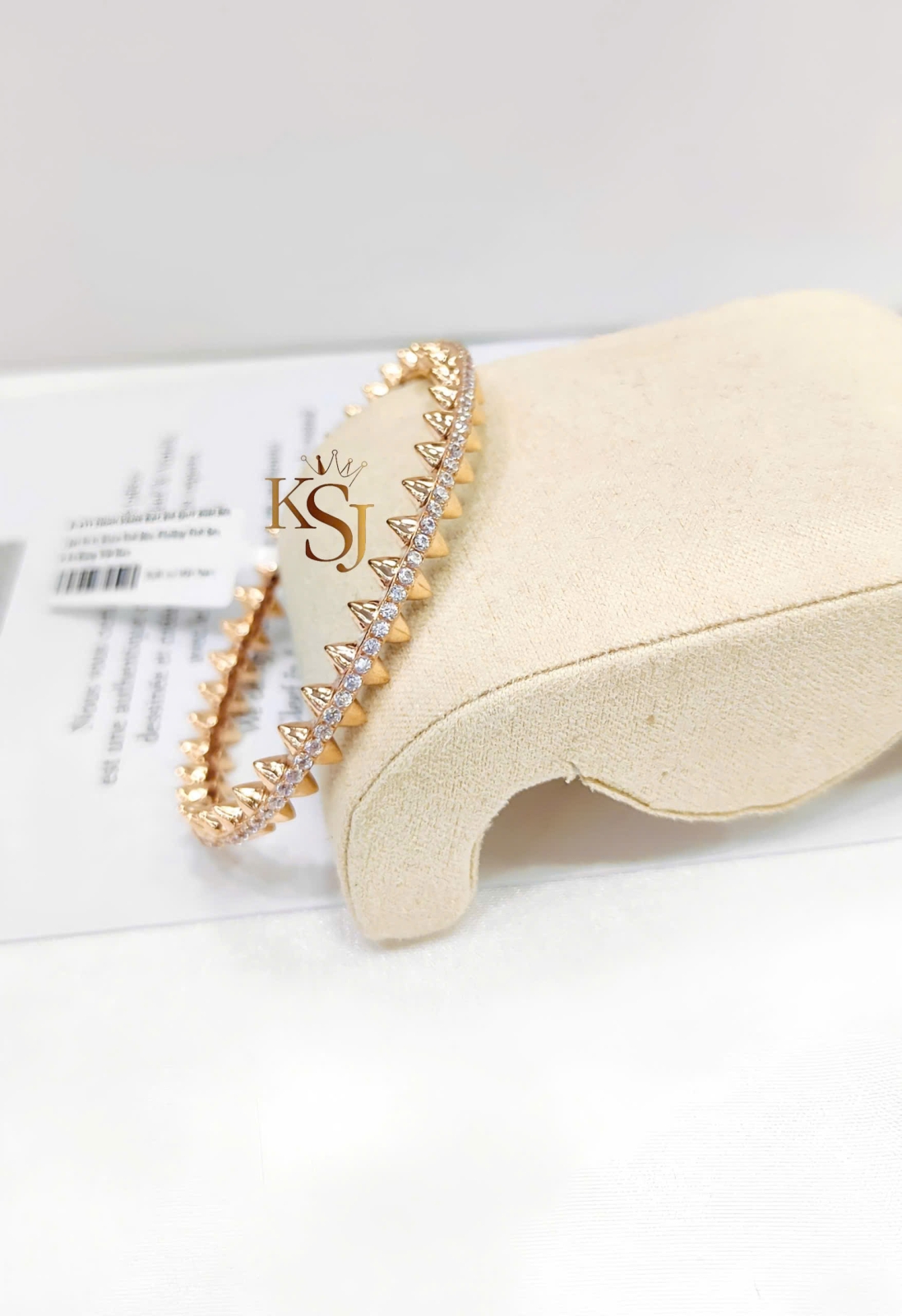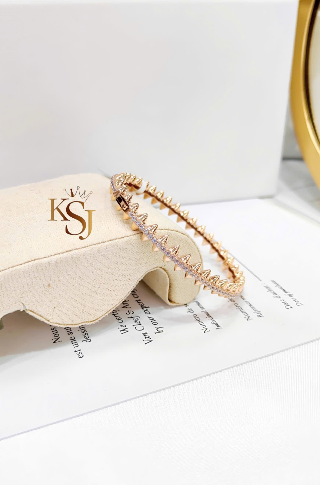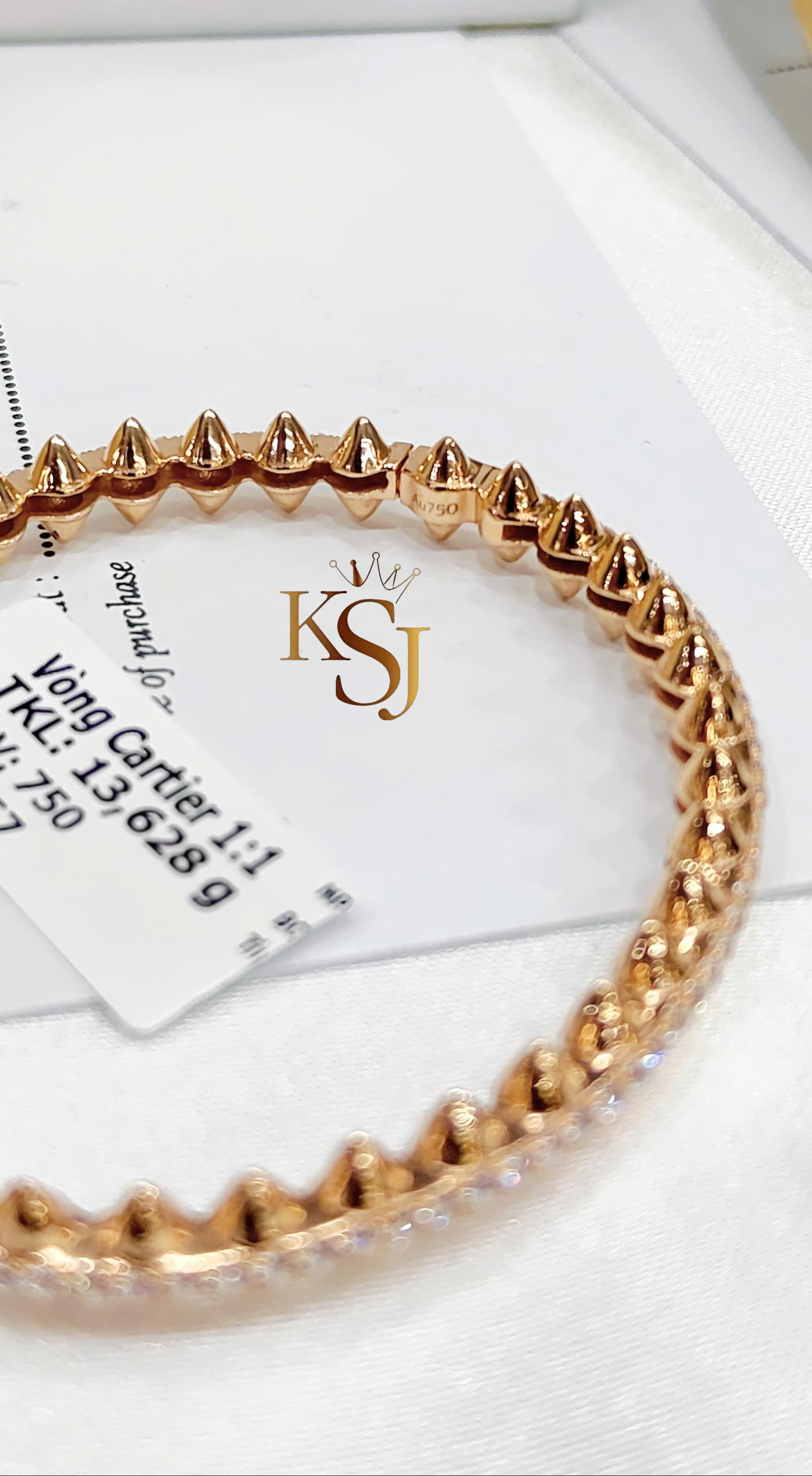 Đá quý: Phiên bản trong ảnh được nạm kim cương dọc theo thân vòng. Tùy theo kích cỡ, vòng có thể được đính đá CZ (Cubic Zirconia)