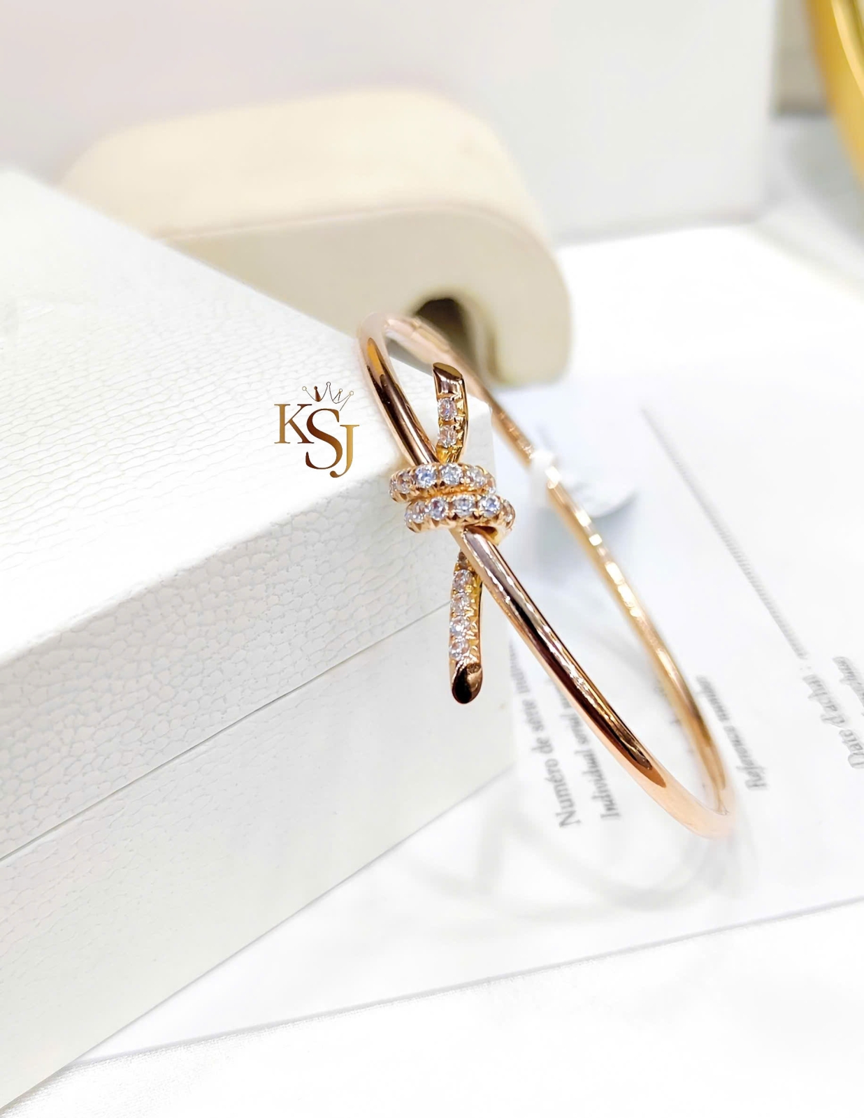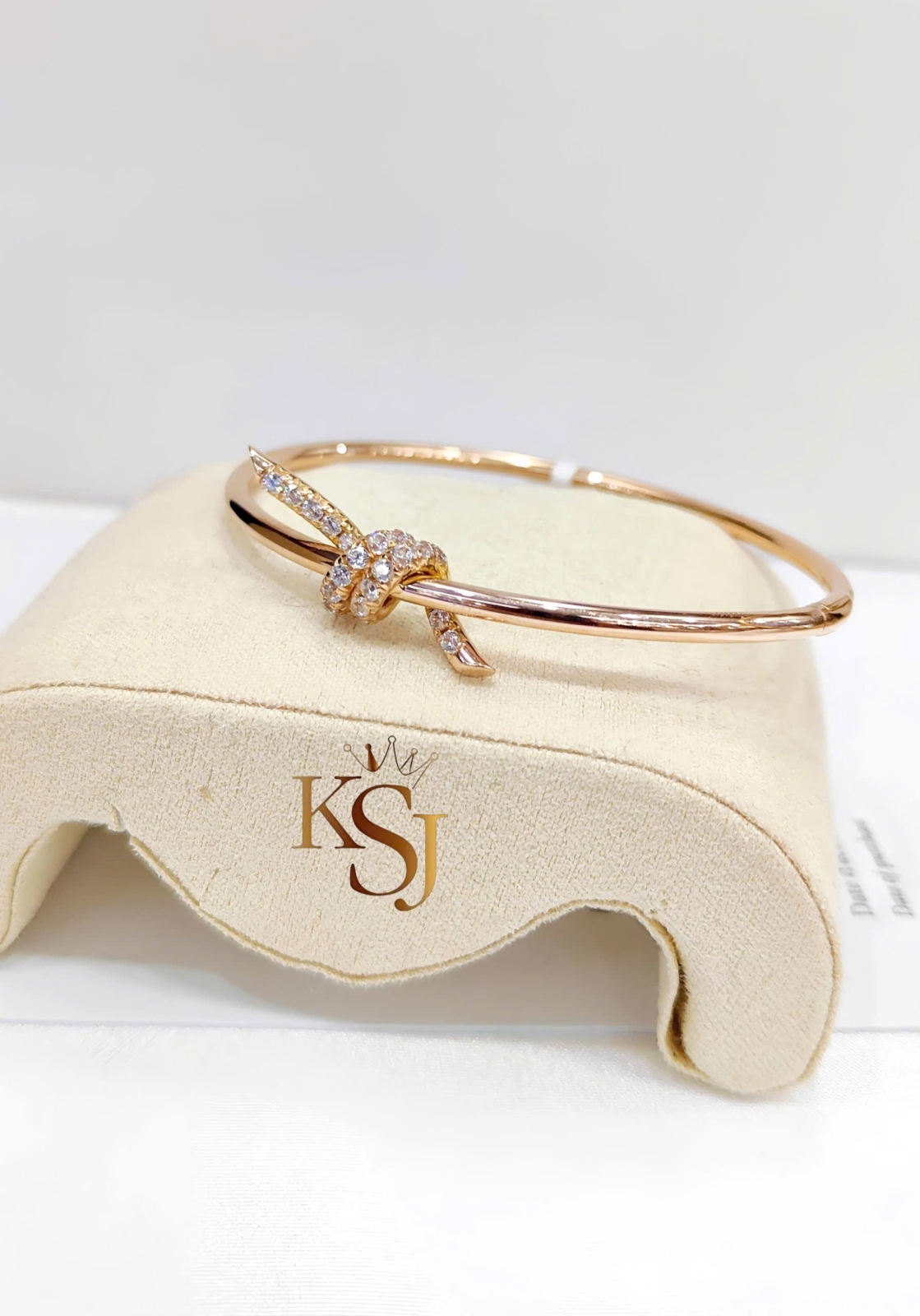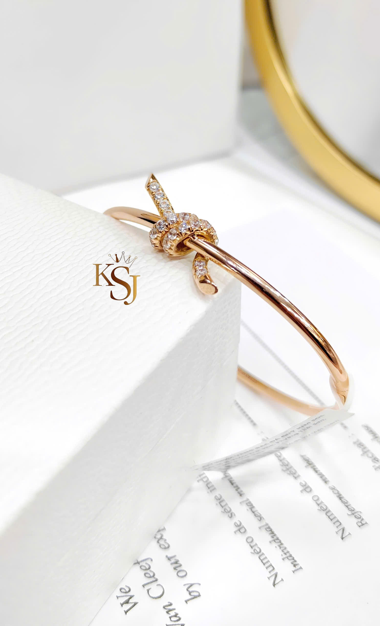 Điểm nhấn: Họa tiết nút thắt đặc trưng được đính các viên đá CZ (Cubic Zirconia)