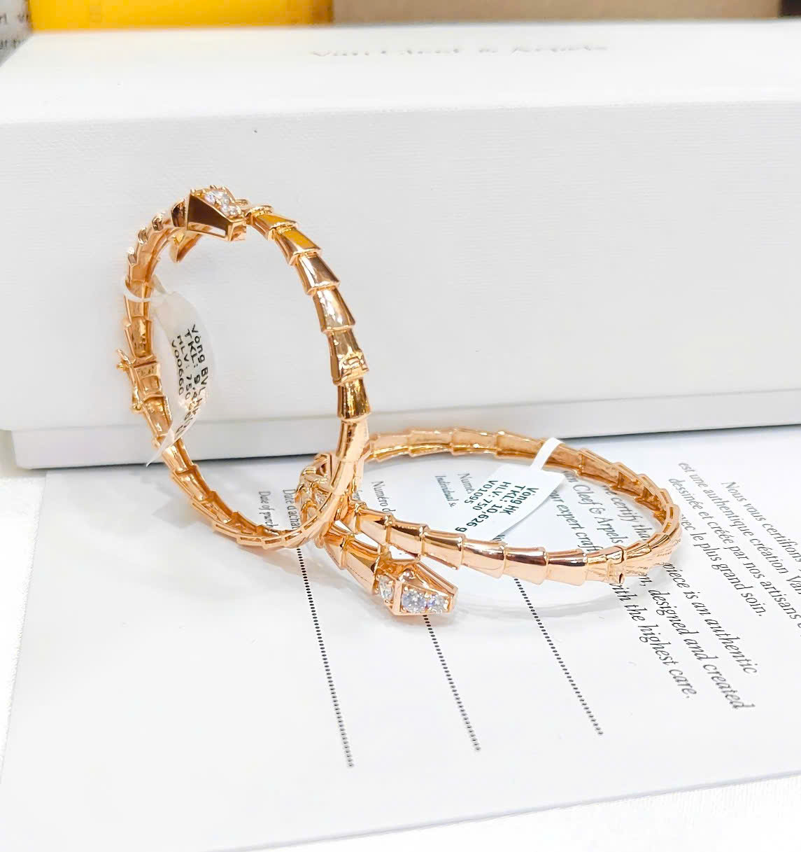 Đặc điểm : Sản phẩm chính hãng có trọng lượng chắc chắn, các vảy rắn được chế tác sắc nét, tinh xảo, mắt đính đá tinh tế. Logo Bvlgari được khắc tinh vi phía trong vòng hoặc ở phần đầu/đuôi rắn.